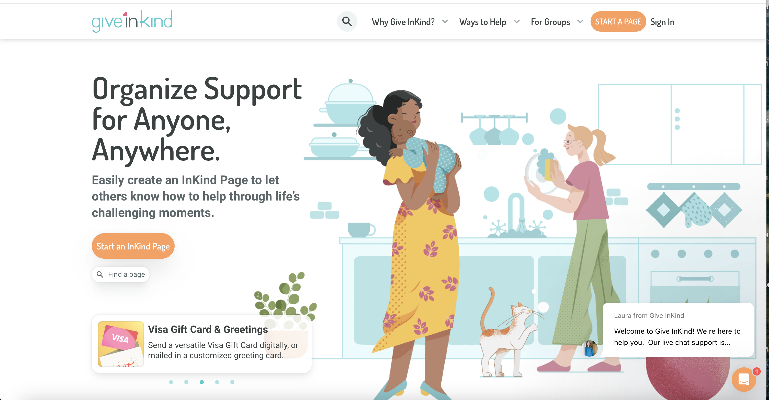 Give InKind is a newer meal train service that allows you to set up a page for yourself or someone else. It’s tailored to the postpartum experience, but works for all sorts of situations. The website walks you through set up depending on your situation, and offers sample pages to give organizers an idea of how to set up and run their meal trains. Give InKind also allows organizers to create a wish list that can be customized to add all sorts of goods and services. Participants can choose to send meals or complete other needed tasks, like household chores and running errands for the recipient. It’s a bit more interactive, allowing participants to message organizers and recipients. It also has sections for updates, stories, and special requests.